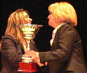 La cugina di Valeria Morioni, Adriana Olivieri, premia il primo classificato Rocco Fedele.